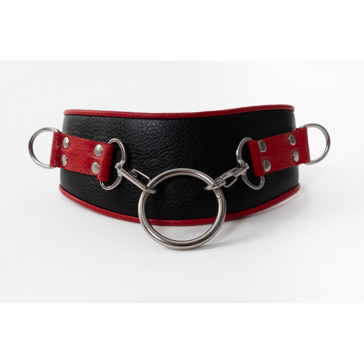Ошейник в БДСМ занимает особое место как аксессуар с наиболее глубоким психологическим значением. Он- символ подчинения и рабства. Достаточно надеть на вашего партнера ошейник и сразу все роли распределены. Останется лишь насладиться волнующим приключением. Ошейник С кольцом-атрибут, который понравится любителям БДСМ. Он обострит ваши ощущения от игры и придаст ей красок и страсти. Ошейник из красной экокожи и застежка ошейника выполнена в виде клепок. Обхват шеи мах: 38.5 см Обхват шеи мин: 31 см Ширина ошейника: 6.5 см