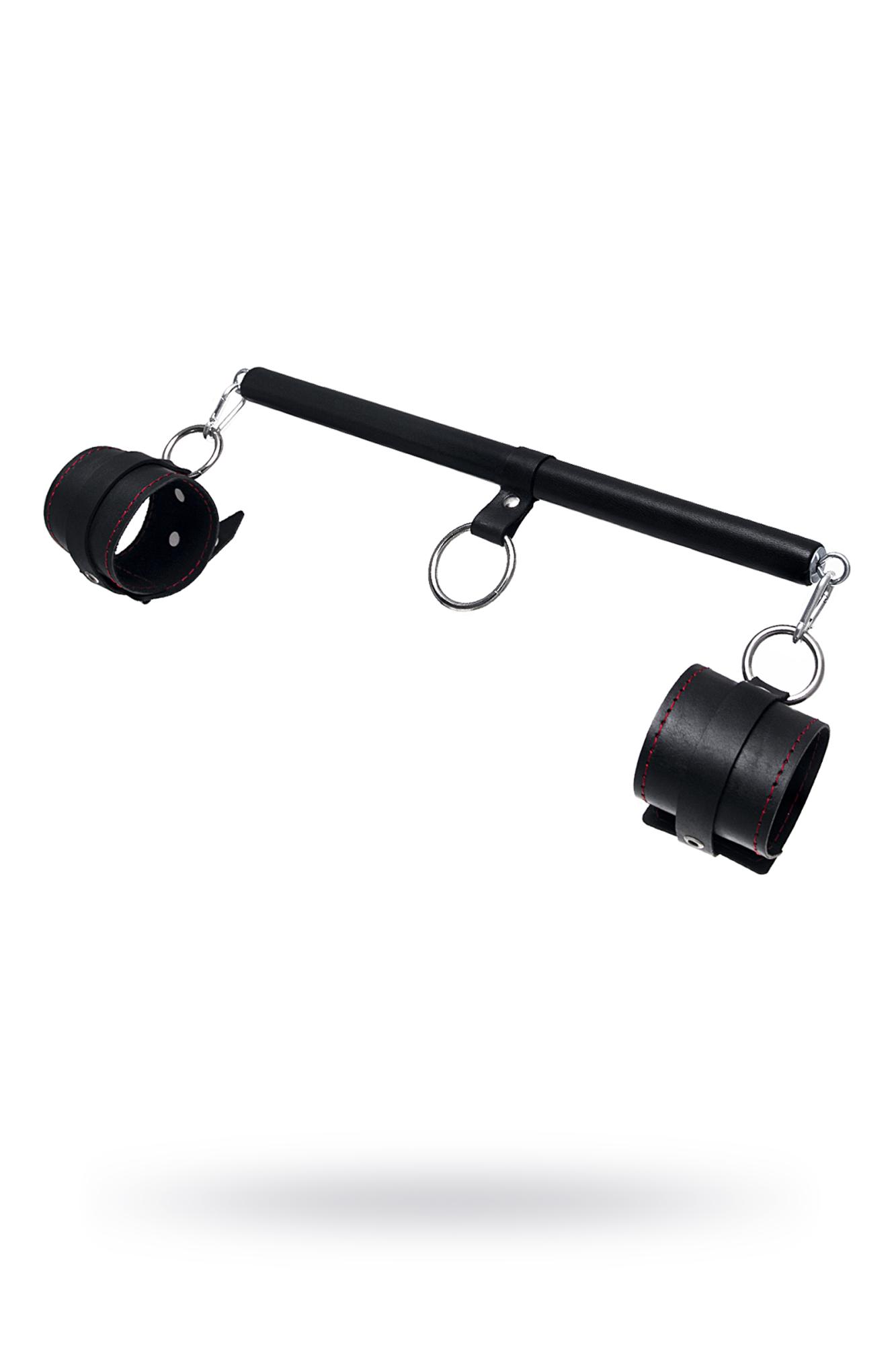 Бондажный набор Pecado BDSM, 3 точки фиксации, распорка, наручники, натуральная кожа, черный (УТ-000