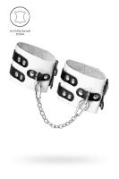 Оковы Pecado BDSM, мягкие, с двумя ремешками, с люверсами, натуральная кожа, бело-чёрные (УТ-0000462