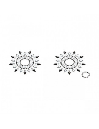 Сверкай! Украсьте свое тело изящным украшением из более чем 200 сверкающих кристалов. Стильные черно-красные стикеры для груди и лобковой зоны.