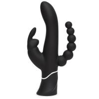 Вибратор с клиторальным и анальным стимулятором Triple черный Happy Rabbit (71506)